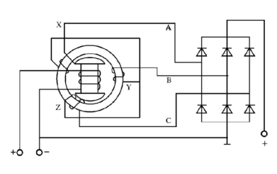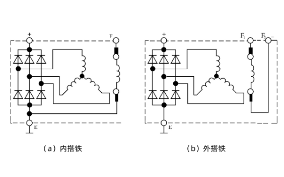 如圖B(a)所示,發電機磁場繞組的一端與發電機殼體連接的交流發電機。
